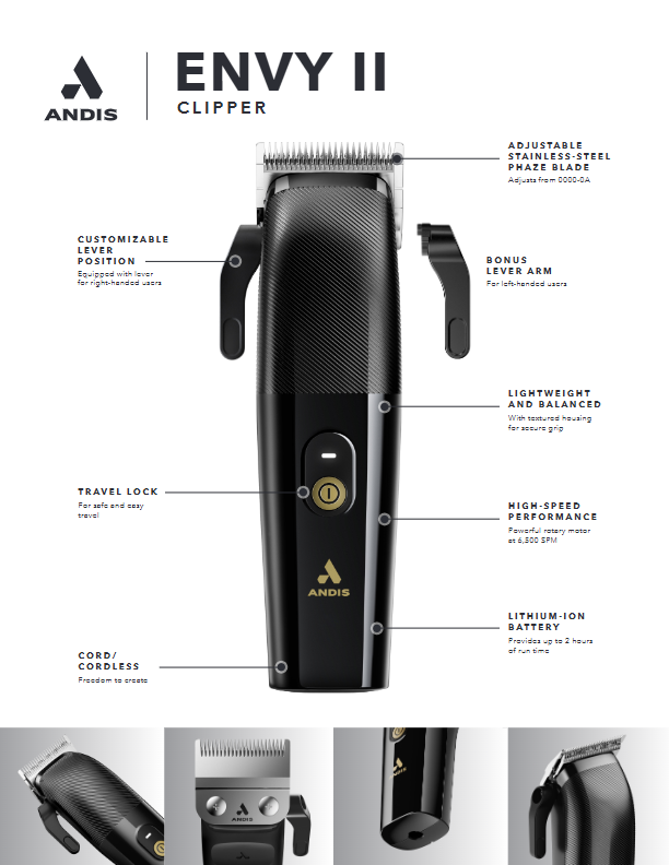 „Envy II Clipper“ turi naują „Phaze“ ašmenį ir yra pritaikomas tiek kairiarankiams, tiek dešiniarankiams. Su šia integruota kirpimo mašinėle sukurkite tobulą pjūvį, išblukinimą ar siaurėjimą.