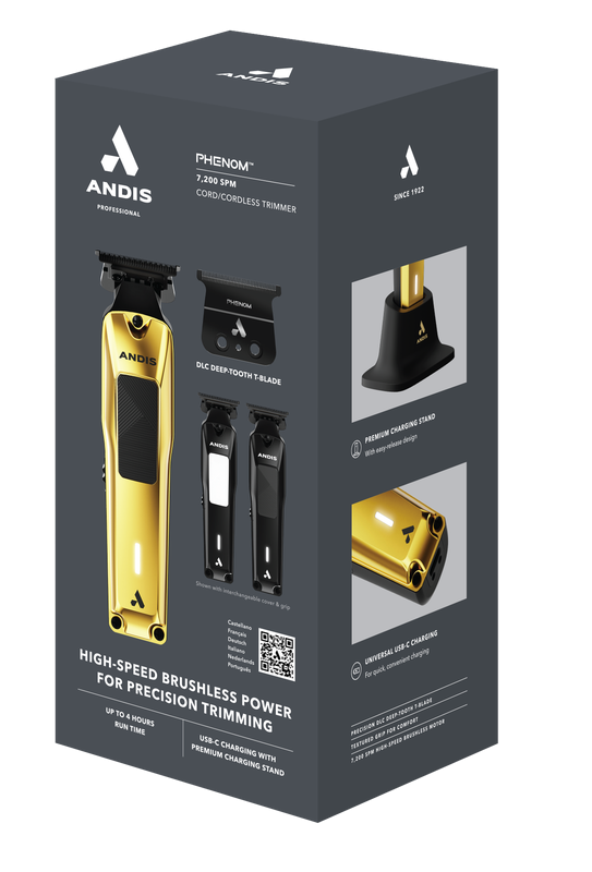 „Phenom“ žoliapjovė pateisina savo vardą su kiekvienu jūsų pjūviu. Su nauju varikliu be šepetėlių, jis užtikrina didelio greičio galią tiksliam darbui esant 7 200 SPM. Išreikškite tikrąjį personalizavimą naudodami specialų keičiamą metalinį dangtelį ir rankenos spalvas keturiems spalvų deriniams. Su DLC giliai dantytais T formos ašmenimis pateikite fenomenalias apdailas ir mėgaukitės išskirtiniu pjūvio ilgio universalumu, kai suporuosite su pridedamomis šukomis. Įkraukite be vargo naudodami universalų USB-C įkrovimo adapterį arba lengvai atimamą aukščiausios kokybės stovą bet kada ir bet kur.