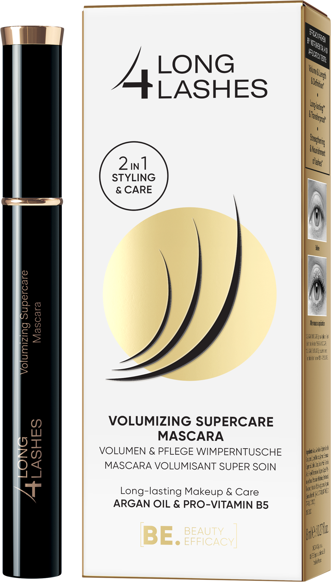 Tušo sudėtyje yra maitinamųjų ingredientų, tokių kaip argano aliejus, provitaminas B5, vitaminas E ir karnaubo vaškas, kurie stiprina ir kondicionuoja blakstienas jų neapsunkindami.