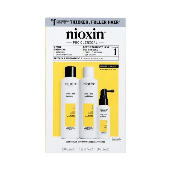 Norint pasiekti matomų rezultatų, naudokite visą Nioxin System 1 rinkinį.