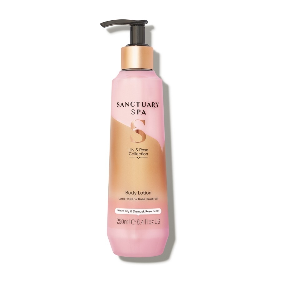 SANCTUARY SPA LELIJOS IR ROŽIŲ KOLEKCIJOS KŪNO LOSJONAS 250 MLLosjonas, praturtintas lotoso žiedų aliejaus mišiniu, praturtintu vitaminais C ir B, taip pat drėkinamuoju rožių žiedų aliejumi. Ypač tinka sausai odai. Palieka odą švelnią ir nuostabiai kvepiančią. Naudojimas: Kūno losjoną tepkite ant švarios, sausos odos.