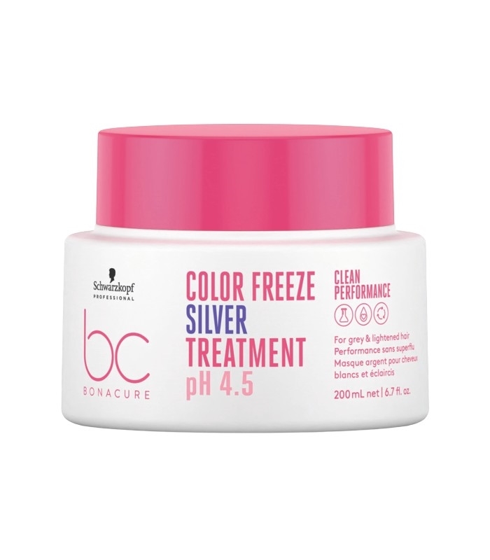 Schwarzkopf Professional Bonacure Color Freeze Silver Mask yra pigmentuota, atkuriamoji plaukų priežiūros priemonė, specialiai sukurta naudoti žilus ir šviesius plaukus, tuo pačiu apsauganti juos nuo nepageidaujamų geltonų atspalvių.