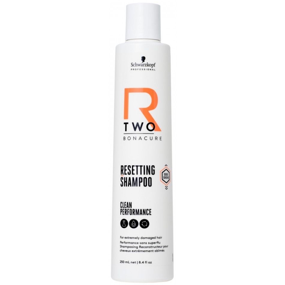 Švelnus, tačiau stiprinantis šampūnas be sulfatų Schwarzkopf Professional Bonacure R-TWO, atkuriantis šampūnas švelniai išvalo ir atkuria itin pažeistus plaukus, kurie buvo chemiškai per daug apdoroti ir fiziškai įtempti, aktyviai padedant surišimo procesui. Optimizuota pH, veganiška formulė subalansuoja itin pažeistų plaukų pH lygį, sumažina odelių patinimą plovimo metu ir palaiko plaukų drėgmės lygį.