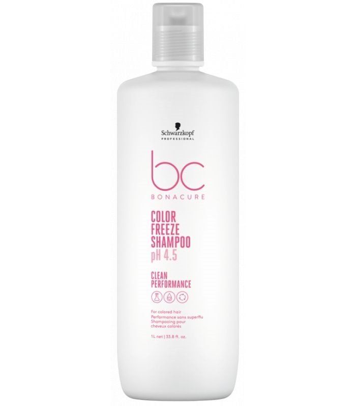 The SCHWARZKOPF BC BONACURE PH 4.5 COLOR FREEZE RICH MICELLAR SHAMPOO is suitable for dull, color-treated hair against color-fading during regular shampooing and which requires an extra shine dose. In addition, the Rich Shampoo strengthens the hair structure (up to a pH of 4.5) and thus achieves a color loss of almost 0%. The gentle, yet intensely nourishing formulation cleans and nourishes the colored hair and is therefore the ideal start for an effective care program.