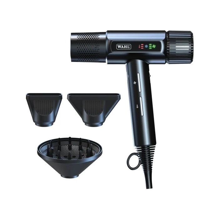 WAHL Vanquish Compact – profesionalus plaukų džiovintuvas iš pasaulyje žinomo WAHL prekės ženklo. Itin kompaktiškas ir lengvas, užtikrina maksimalų komfortą, tikslų oro srautą ir aukštą efektyvumą nepriekaištingiems rezultatams. Paprastas, bet funkcionalus pagalbininkas greitam džiovinimui ir lengvam formavimui.