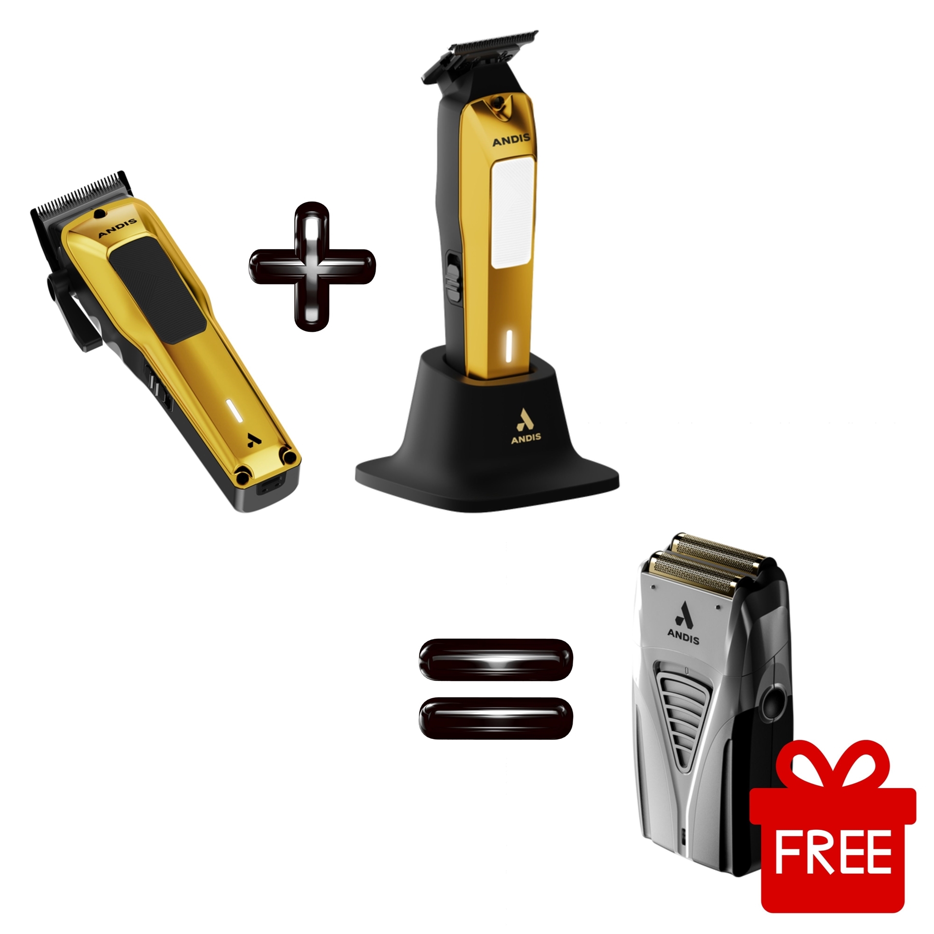 Clipper komplektuojamas su auksiniu dangteliu ir juodos tekstūros rankena, antriniu juodu dangteliu ir baltos tekstūros rankena, 5 dvigubo magnetinio priedo šukomis (#0 - 1/16", 1# - 1/8", #2 - 1/4", #3 - 3/8", #4 - 1/2"), ašmenų valymo šepetėliu, aukščiausios kokybės įkrovimo stovu ir ašmenų įkrovimo adapteriu, ašmenų ašmenų įkrovimo adapteriu.
